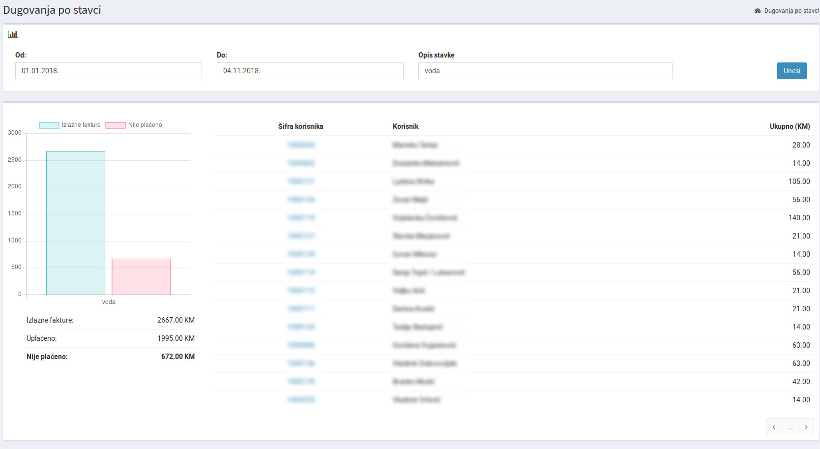 Sekcija Dugovanja po stavci Vam može pomoći ukoliko želite da pregledate dugovanja po pojedinim stavkama (recimo dug vode ili struje)