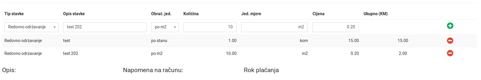 Unos stavki se vrši jednu po jednu. Nakon što ispunite sva polja stavke, kliknite na + ikonicu.