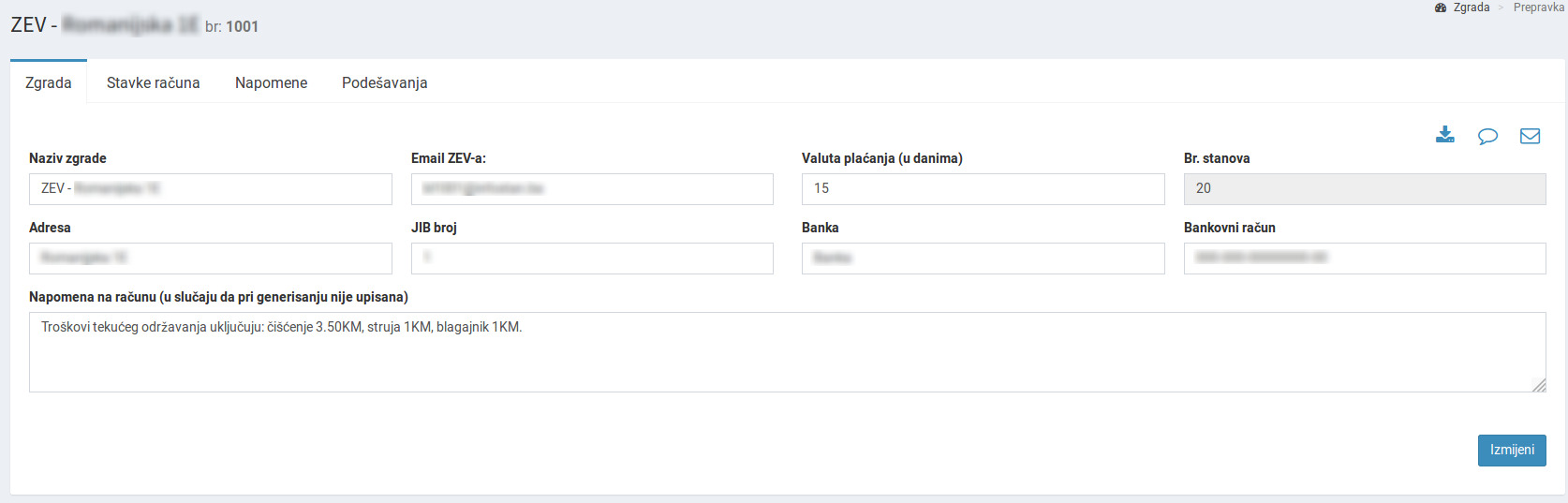Formu za prepravku i pregled podešavanja možete otvoriti i klikom na ikonicu “Podešavanja” u gornjem desnom uglu.